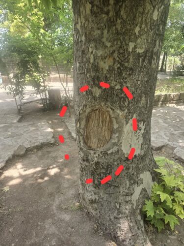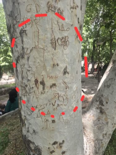 اما برخی مسافران چاقو به دست قلب تپنده درختان را نشانه می گیرند و یادگاری از فرهنگی البته بی اهمیتی به این باغ ایرانی بی نظیر را حک می کنند.