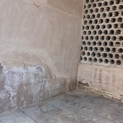 حیاط مسجد کثیف و فضای جست وخیز برخی حیوانات شده بود دیوارهای داخل و کاشی های آبی زیبا در حال تخریب و ریخته شدن بود .